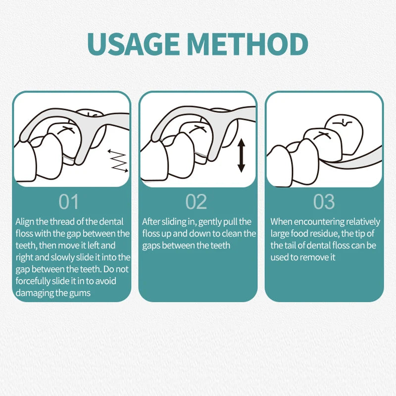 Maintain perfect oral hygiene wherever you go with our ultra-fine disposable dental floss sticks. Designed for convenience, these portable floss sticks fit easily in your bag, purse, or car, ensuring you can clean your teeth anytime.